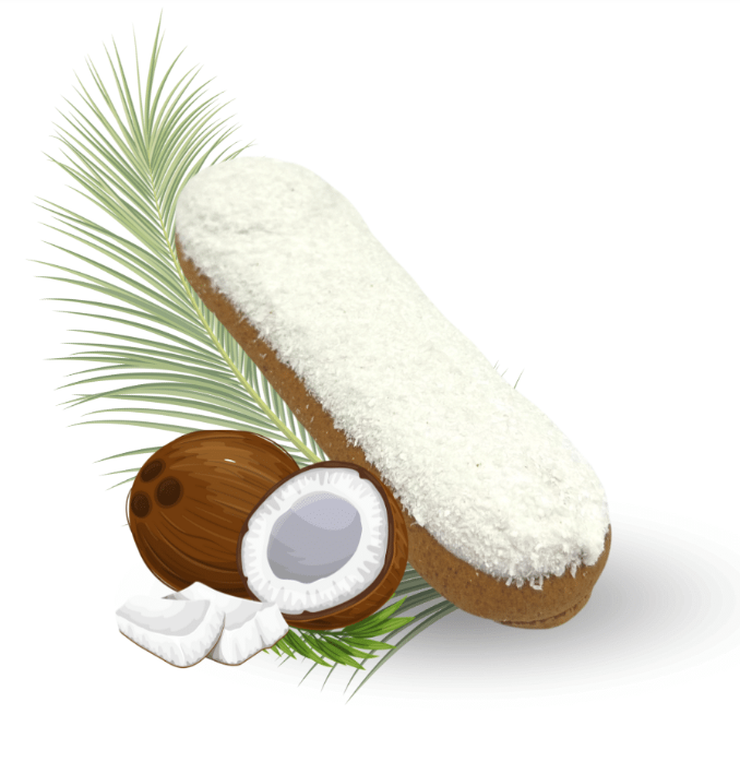 - Handversierd met echte kokosvlokken voor natuurlijke smaak en textuur